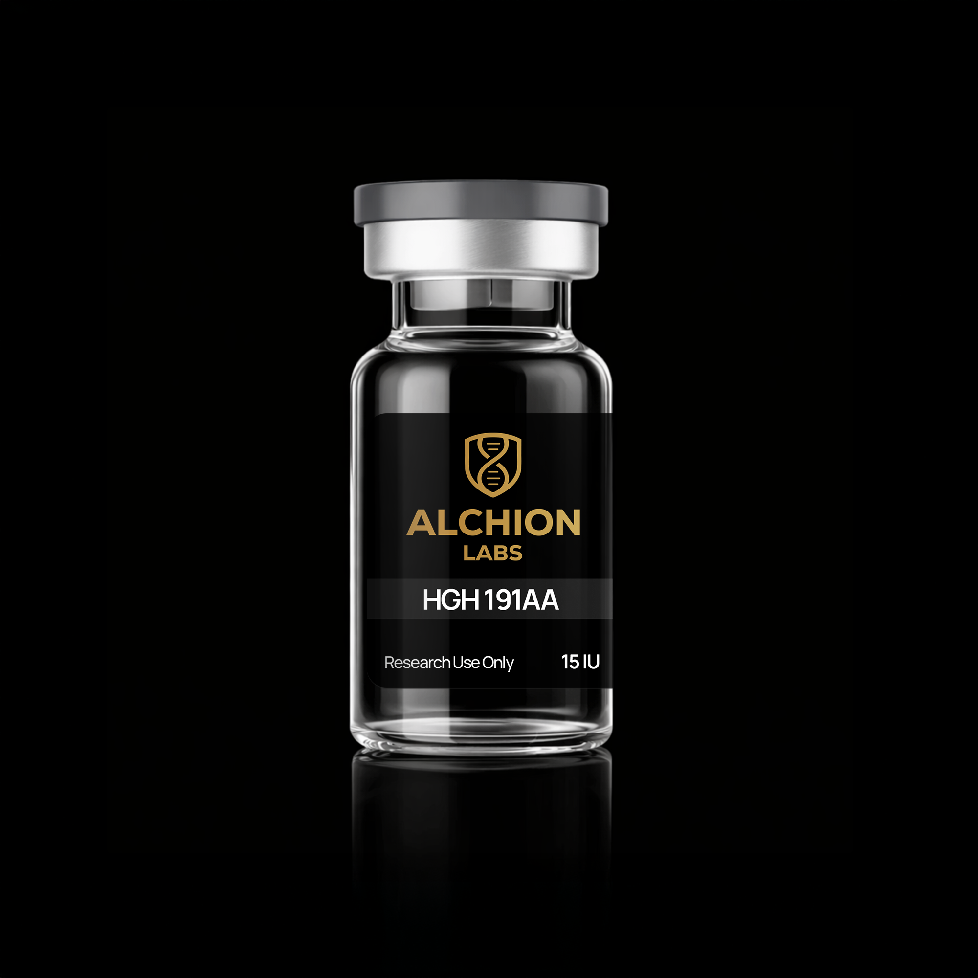 HGH 199AA in a 15 IU vial. Intended for laboratory research use only. Not for human consumption.